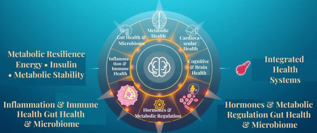 The platform integrates systems medicine, metabolic health, and long-term resilience into a unified framework designed for the future of healthcare.